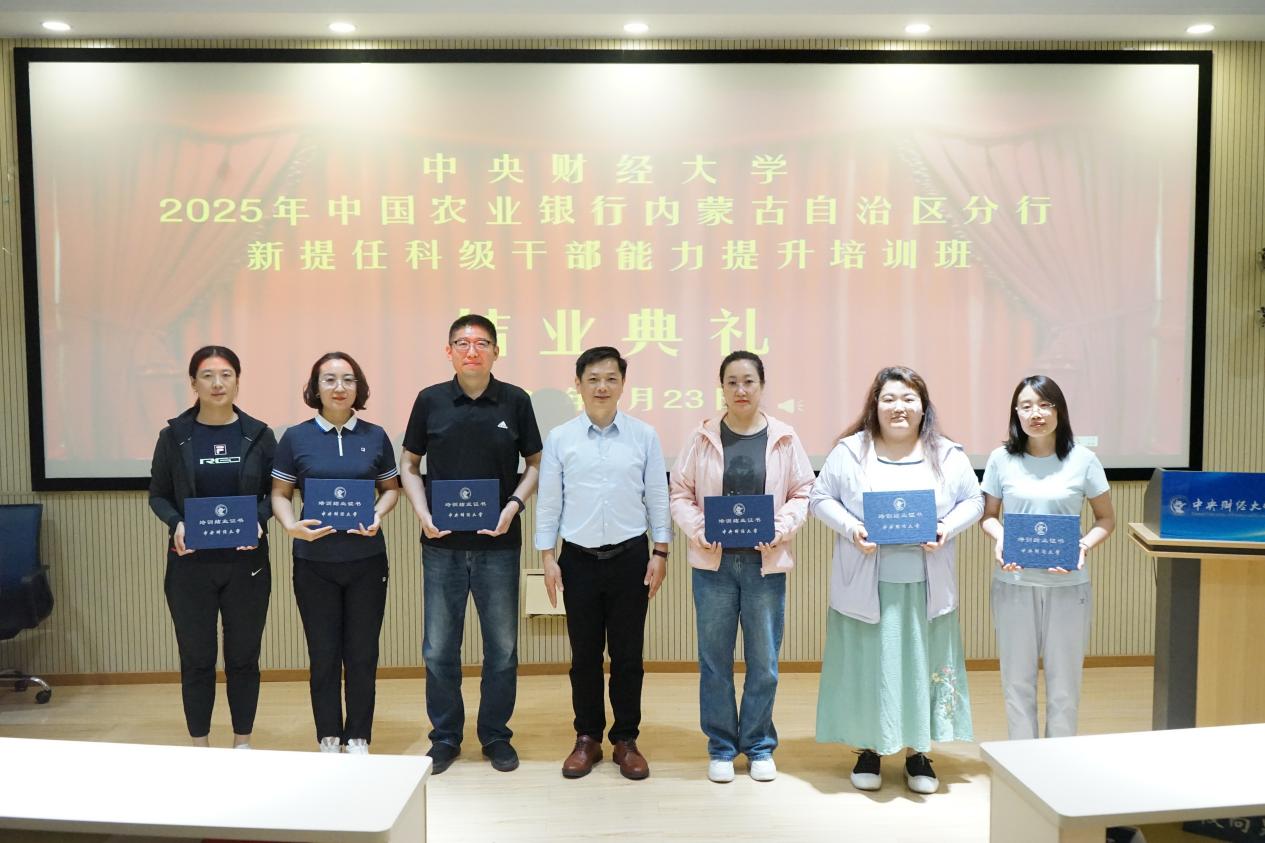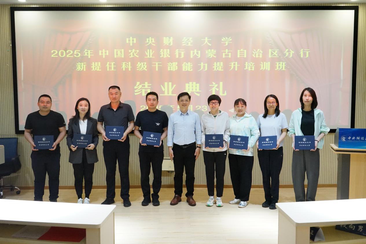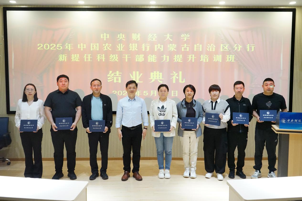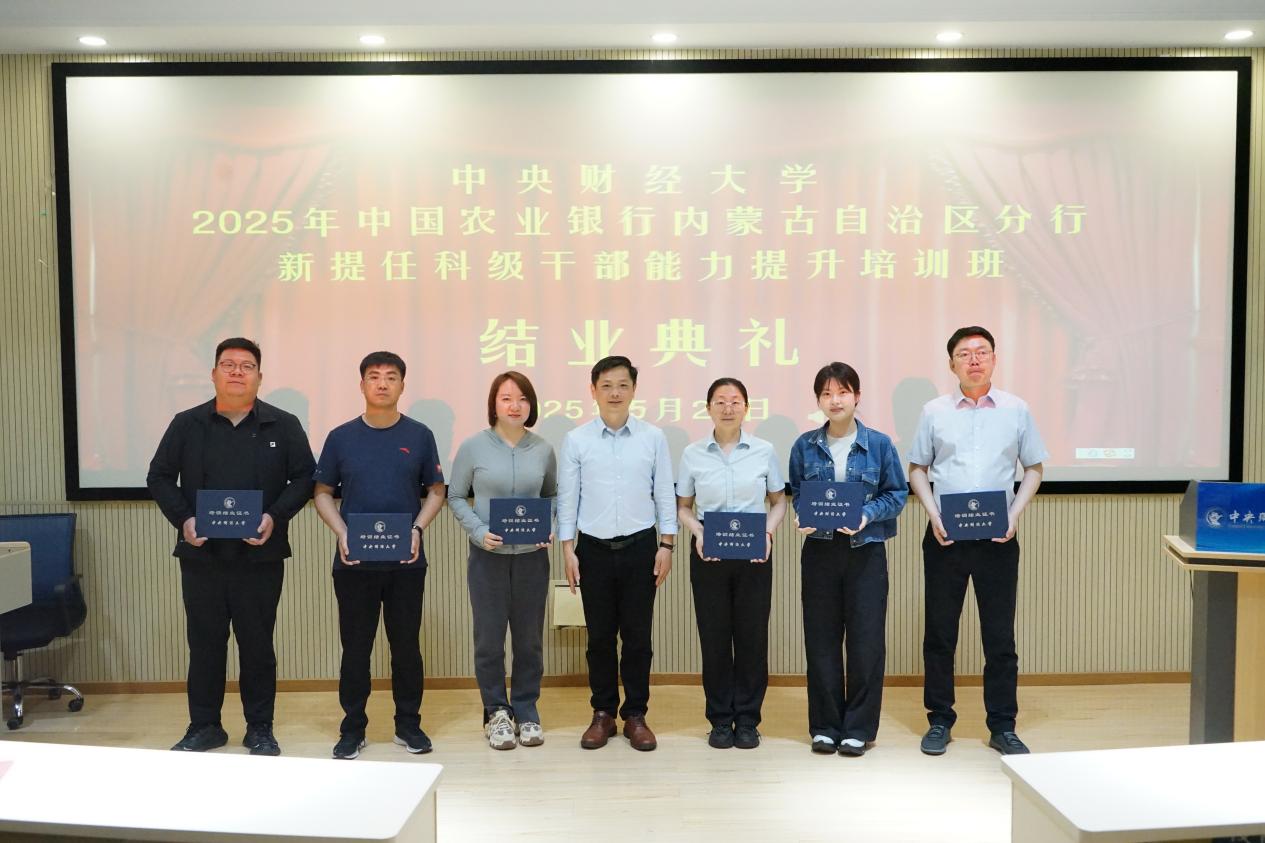 5月23日下午,培训班举行结业典礼。星空XK体育副院长朱飞教授出席典礼并作总结致辞。朱飞高度评价学员们在紧张学习中展现的严谨学风和进取精神,系统回顾了培训课程对提升干部政治能力、专业素养与管理效能的支撑作用,勉励大家以此次学习为新起点,将前沿理念、创新方法和中财人“经世济民”的情怀融入工作实际,在推动农行内蒙古分行战略落地和改革攻坚中勇担重任、再建新功。典礼上,朱飞为全体学员颁发结业证书,标志着为期四天的能力提升之旅圆满收官。学员们普遍表示,本次培训内容精实、组织有序,实现了理论认知、视野格局与实践能力的同步跃升,为履行新岗位职责奠定了坚实基础。