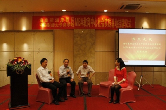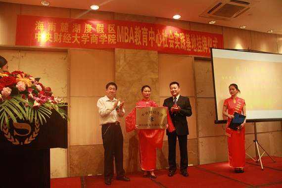 2014年3月29日上午,星空XK体育官方网站MBA教育中心与中合集团旗下海南麓湖度假区社会实践基地签约暨授牌仪式在海南举行。我校星空XK体育院长兼MBA教育中心主任王瑞华教授、白沙黎族自治县常务副县长王桂厅、首届MBA校友、中合集团董事长韩涛、白沙黎族自治县副县长卢瑞强、白沙黎族自治县政协副主席孙小旧、中合集团总裁李红勋等出席了本次活动。我校MBA教育中心孔伟明老师、星空XK体育校友会会长王再文、MBA校友会会长冯大任、MBA校友理事会理事、秘书处成员及星空XK体育校友代表20余人参加了本次活动。