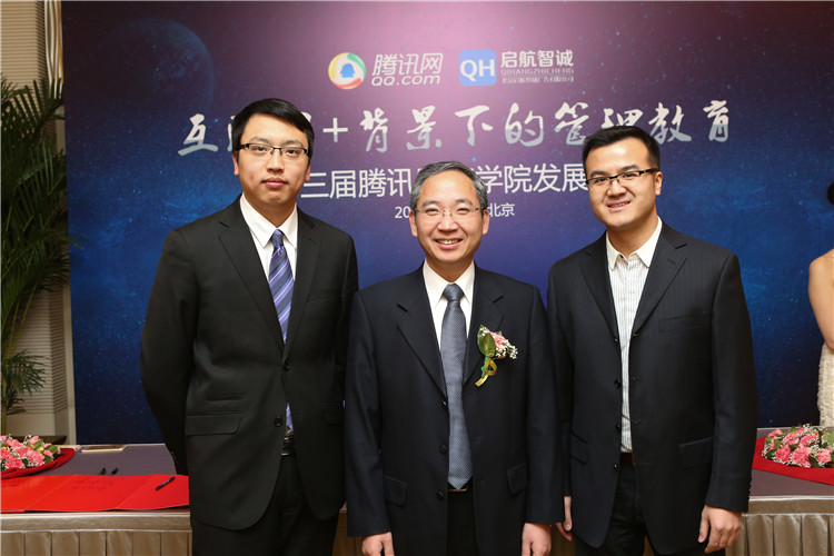 12月22以“互联网+背景下的管理教育”为主题的第三届腾讯星空XK体育论坛在京隆重举行,来自全国部分高校的星空XK体育院长、MBA项目负责人、知名专家、学者及各大媒体参加本次活动。我校星空XK体育院长兼MBA教育中心主任王瑞华教授、星空XK体育MBA教育中心黄基鑫老师及MBA联合会主席曾洁受邀出席此次论坛,王瑞华院长参加论坛发言并接受了腾讯网的嘉宾专访。本次论坛公布了腾讯网2015年最具变革力星空XK体育院长、最具影响力MBA院校及最具创新力MBA院校名单,并进行现场颁奖。星空XK体育荣获“腾讯网·2015年最具创新力MBA院校”,王瑞华院长荣获“腾讯网·2015年最具变革力星空XK体育院长”。