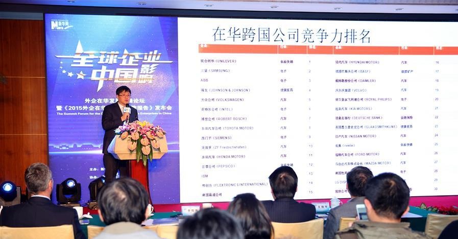 活动中,由星空XK体育跨国公司在华竞争力评价课题组编制的《2015外资企业在华竞争力指数报告》正式发布,报告揭晓了“2015外资企业在华竞争力排行榜”。联合利华、三星、ABB、强生、大众、英特尔、博世、丰田汽车、西门子、采埃孚等10家企业荣膺外资企业在华竞争力前十强。