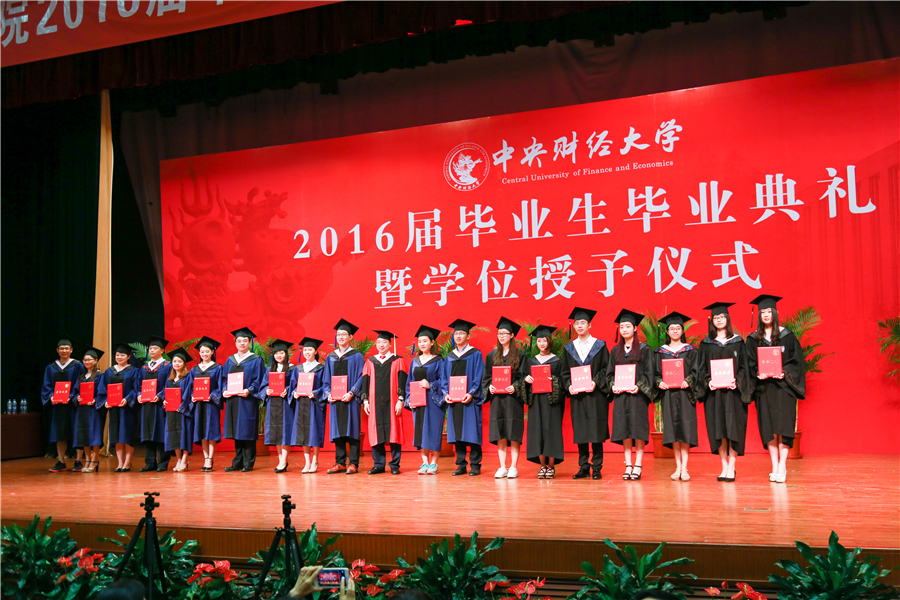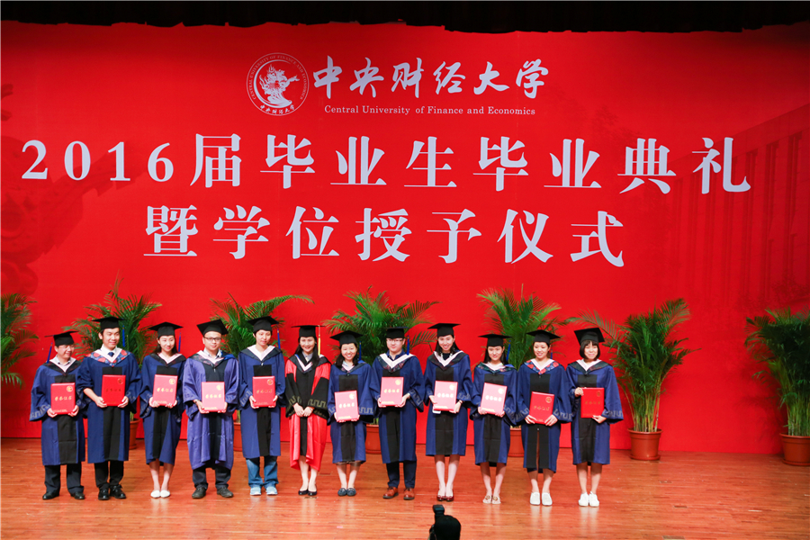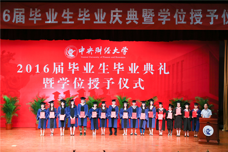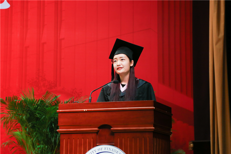 2012级本科生曾戬媛、2014级学术性硕士生蕾拉、2014级MBA硕士生殷丽莉、2013级博士生韩慧林分别作为毕业生代表发表了毕业感言。代表们回顾了难忘的校园生活,衷心感谢老师们付出的心血和汗水,感谢同学们彼此之间的关爱和帮助,感谢亲友们在自己求学之路上的支持!他们表示,作为中财的毕业生,他们一定自觉担负起时代赋予的历史重任和光荣使命,秉承母校“忠诚、团结、求实、创新”的校训,牢记老师们的谆谆教诲,在今后的工作中谱写新的篇章,创造新的辉煌,以骄人的成绩为母校增光添彩,为实现中华民族伟大复兴的中国梦努力奋斗!来自物流管理专业的曾戬媛同学已被美国俄亥俄州州立大学哥伦布分校录取,她的2012级本科同学中还有30位小伙伴也将分赴海外,前往伦敦政治经济学院、纽约大学、新加坡南洋理工大学等国际知名高校深造;而学术型硕士研究生代表蕾拉则是来自非洲马里共和国的留学生,她用流利的中文表达了她对星空XK体育官方网站、中财星空XK体育师生友人们的感谢,要将这份真挚的情谊带回她的祖国!
