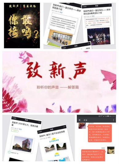 为使新生对学校、学院有进一步的了解与认识,星空XK体育学生会及时建立学院官方QQ群,传达学校及学院的相关通知。同时,依托星空XK体育团委学生会微信平台“商音”开展了 “致新‘声’”系列推送。推送共计13篇,囊括了校园生活、学术活动、团学介绍等有关新生校园生活的各个方面,为即将到校的新生全方位展现了多彩的校园生活。
