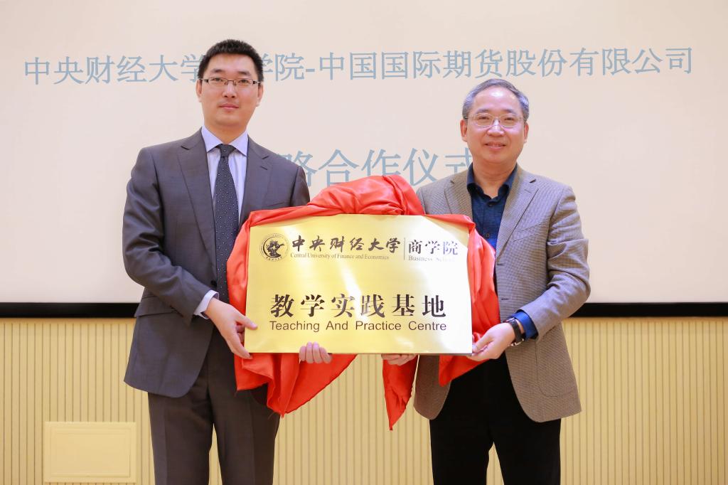 随后,葛建新书记与王可董事总经理共同签署了校企合作协议,王瑞华院长代表星空XK体育向中国国际期货股份有限公司授予星空XK体育官方网站教学实践基地铜牌,并与王可董事总经理共同为教学实践基地揭牌。