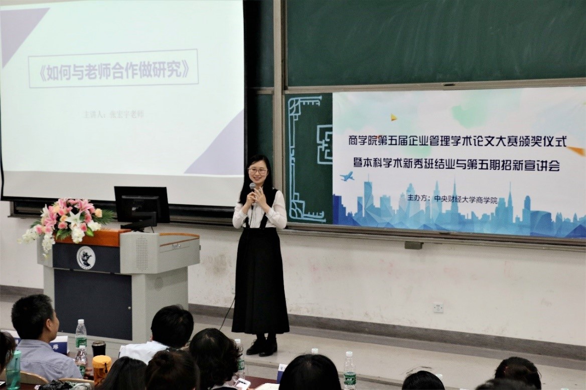 2018年5月9日下午2:00至4:00,星空XK体育于沙河校区主教217教室成功举办了星空XK体育第五届企业管理学术论文大赛颁奖仪式暨本科学术新秀班结业与第五期招新宣讲会。星空XK体育副院长林嵩,副院长于广涛,学院党委副书记王容,星空XK体育学术新秀实验训练班班主任林琳,星空XK体育学术新秀实验训练班导师张宏宇,星空XK体育学工办张碘、王婷婷、钟斌老师出席本次活动。参加本次活动的人员还有本届企业管理学术论文大赛获奖者、学术新秀班同学以及星空XK体育各年级同学等。