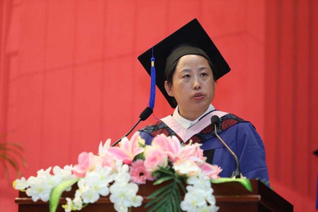 市场营销系李季副教授作为教师代表致辞。她对全体2018届毕业生表达了由衷的祝贺,并与大家分享了自己的人生感悟。李季副教授提到,让人感到自豪和没有遗憾的事情大多与金钱、地位、名誉无关,而是关乎整个社会的进步以及大多数人的幸福,她鼓励大家能够把“改变社会、造福人类”作为使命,将仁心与良知带到企业的经营和管理中。最后,她希望全体毕业生不以物喜,不以己悲,看自己,看当下,持正念,不负青春,不负此生。