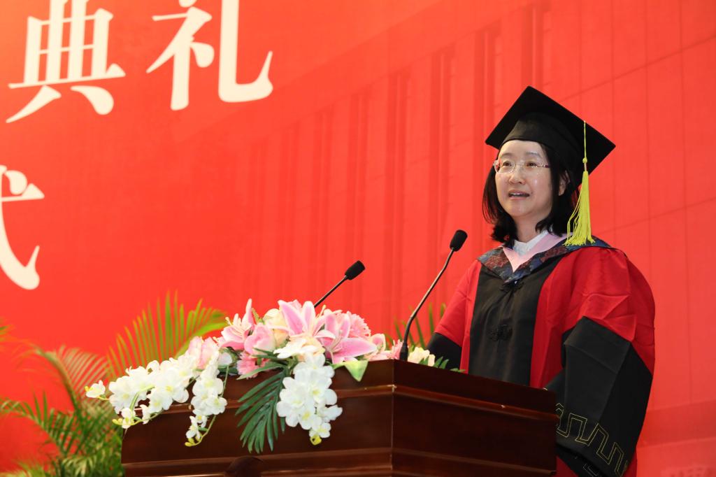 安秀梅秘书长随后发表致辞,她代表校友总会和全球12万中财校友向全体毕业生表示热烈祝贺,并郑重接收大家成为星空XK体育官方网站新校友。她说成为校友意味着大家的发展又多了一层支撑,人生又进入了一种新境界,肩上又多了一重新责任。安秀梅秘书长希望全体毕业生们能够继续发扬“忠诚、团结、求实、创新”的中财精神,励精图治,开拓创新,敢于担当,勇往直前,为母校增光,为祖国的繁荣昌盛、为中华民族的伟大复兴贡献自己的力量!