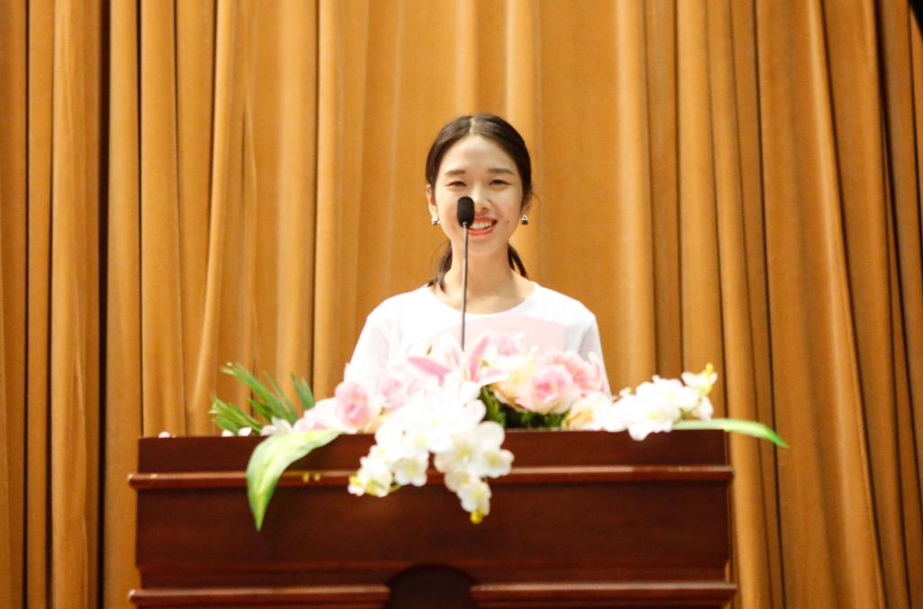 研究生新生代表(MBA)赵颖凡同学通过对自己、家人朋友、老师的感谢引出了我校MBA群体的特征,该群体为各行业精英管理层,平均年龄30岁,平均工作年限约7年,遍银行,证券、保险、基金等领域。并以其个人所在行业的发展及职业理想为例,通过对MBA项目优势和2018级MBA新生职业背景多元化的概括,得出实现中财MBA愿景和使命的必然性。并在最后引用咨询行业鼻祖麦肯锡的经典语录,呼吁18级新生把握时间和当下资源,为创造中财MBA辉煌未来及成就卓越自我付出努力。