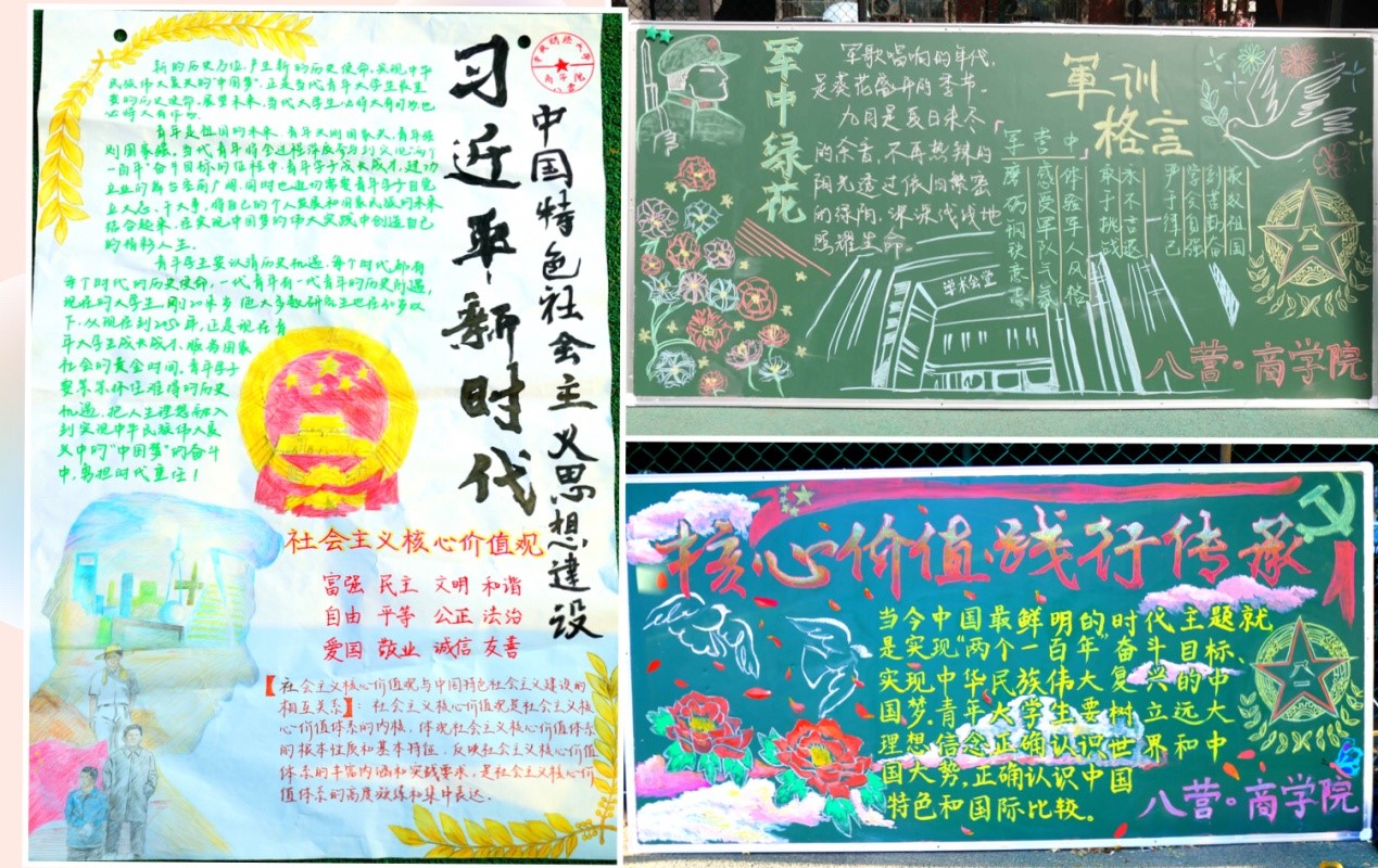 在训练之余,军训团还举行了其他丰富多彩的活动,黑板报与手抄报风采展示、拔河比赛、歌咏比赛等等,星空XK体育八营的同学们在这些活动中也取得了傲人的成绩,歌咏比赛第二名、拔河比赛第三名、黑板报三等奖。这些活动不仅能够缓解同学们训练的紧张和疲劳,还增进了同学们彼此之间的交流与合作,让星空XK体育八营变得更有凝聚力。