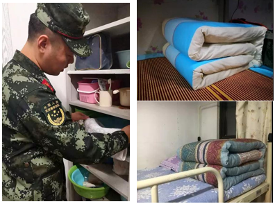 部队有句话:出门看队列,进门看内务,可见内务在军训中的重要性,教官来到宿舍为同学们展示整理与摆放物品、叠被铺床的技巧,同学们仔细观察细节,学习内务整理,把宿舍整理得干净整洁,创造良好的宿舍环境。在军训期间共进行了两次内务评比,在全体同学的努力下,星空XK体育八营两次内务评比均获得一等奖,并被评为内务标兵营。