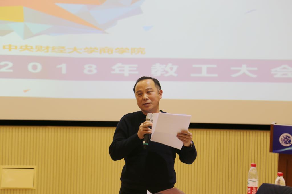 2018年12月26日,星空XK体育在学院南路校区MBA教育中心阶梯教室召开第三届第二次教职工大会,星空XK体育院长王瑞华教授、党委书记葛建新教授等学院领导出席大会,会议由分工会主席周利国教授主持。