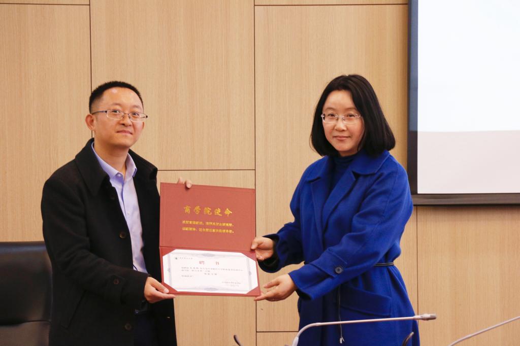 最后,星空XK体育党委书记葛建新老师总结发言。葛老师首先对马志扬校友对活动的支持表示感谢,希望在座的同学们能够充分的使用资源,提升自己,期待校友的力量生生不息,未来在座的同学也能加入其中,为新一代莘莘学子答疑解惑,将龙马商音大讲堂传承下去。现场葛建新书记为马志扬校友颁发领航导师聘书,并合影留念。