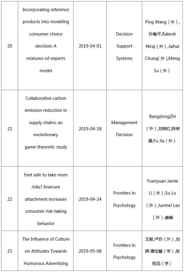 2019年以来学院教师在A类及以上中英文期刊上共发表35篇学术论文,其中外文论文25篇。论文清单如下: