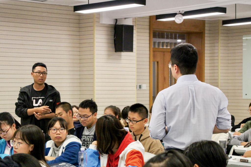 自由提问环节中,同学们提出了入学一个月以来学习中遇到的种种疑问,其中包括时间的平衡分配、写作能力的训练方法、注意力的锻炼方式、抽象问题的深入理解等。刘老师就大家所问耐心解答,鼓励大家大胆尝试,沉下心来,踏踏实实学习基础知识,主动思考、广泛阅读、获取多元化信息;同时,保持一颗热诚之心,培养想象力,循序渐进地养成多维度思考方式和独立思考能力。