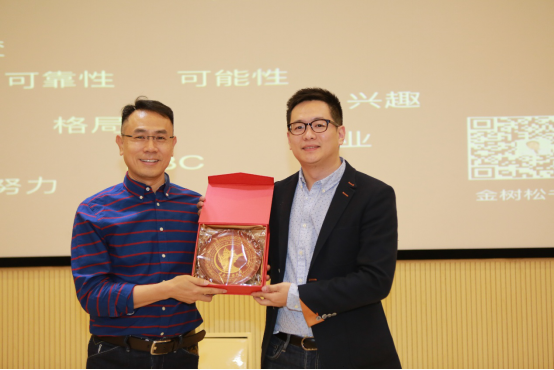Q&A环节,针对跳槽为了什么,什么时机跳槽合适的现场提问,金树松先生给出个人建议:第一,不要为了物质需求而跳槽,核心能力锻造最重要;第二,在变革时期更应该团结抱团,而不是逃避或盲目跳槽。关于如何掌握忠诚度及其分寸感,金树松先生表示,忠诚度是维持企业安全感的指标,弄清楚什么是忠诚,如何表达忠诚是必要的。并举例探讨了死忠、愚忠与结合二者的第三种忠诚的特点,希望大家合理理解忠诚、表达忠诚。对于有同学提出个人所在的事业单位没有成长空间的疑惑,金树松先生建议其结合个人目标做合理规划,善于学习身边的人,建立立体的、长远的学习体系。最后,金树松先生建议大家明确个人信仰,寻求真善美人生目标,尽力帮助与感恩他人,珍惜MBA就读机会。其感人肺腑的中肯建议与幽默生动的语言风格,赢得现场阵阵掌声。