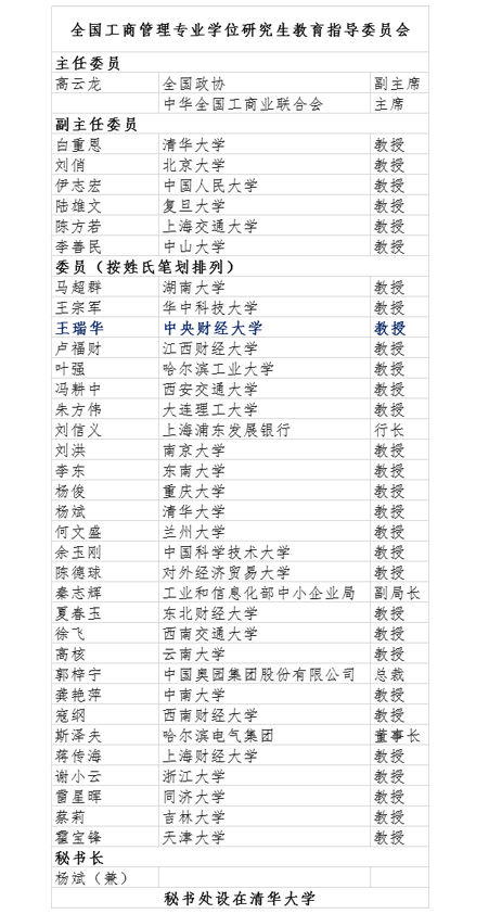 近日,国务院学位委员会发布《国务院学位委员会 教育部 人力资源社会保障部关于全国社会工作等5个专业学位研究生教育指导委员会换届的通知》(学位﹝2019﹞24号),我校星空XK体育王瑞华教授获聘为新一届全国工商管理专业学位研究生教育指导委员会委员。
