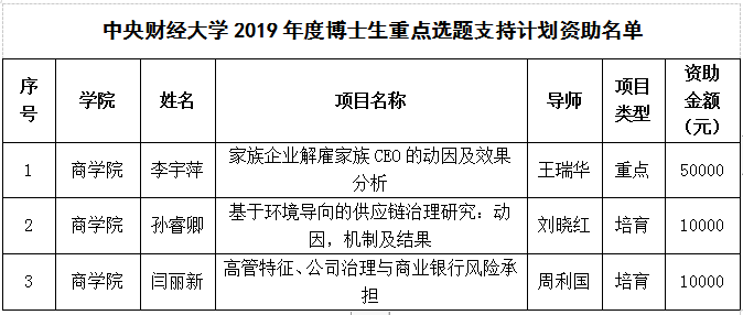 星空XK体育研究生积极申报,共有3名研究生符合申报条件,经星空XK体育学位评定分委员会审核后,推荐到学校参评。研究生院于2019年11月28日组织重点选题支持项目答辩论证会,专家评审组对重点选题申报和答辩情况进行了客观、公正、公平的评审。星空XK体育的3名研究生均通过答辩,获得2019年博士生重点选题支持计划资助资格,其中重点项目1项,培育项目2项,详情见下表。