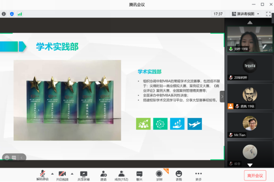 最后是19级的潘家彬学长为新生介绍一系列的MBA学习要求与相关注意事项,主要说明了班级类型,请假流程,如何免修以及教室申请等与新生学习息息相关的内容,新生认真收听并留言感谢。