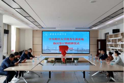 4月19日下午,星空XK体育本科招生宣传小组赴甘肃省酒泉中学举行“星空XK体育官方网站优质生源基地”签约授牌仪式并开展相关招生宣传工作。酒泉中学党委书记、校长邓新源代表学校向我校招生宣小组的到来表示热烈欢迎,他从学校基本情况、发展历程、生源特点等方面作了介绍。姜峰副院长从学科特点、培养体系、师资力量等对星空XK体育官方网站做了介绍,他表示,我校将以学科优势和专业特色为依托,与酒泉中学加强交流、密切合作,引导学生加深对财经类专业的认知,激发学习兴趣,做好生涯规划。杨中英副书记从学校校史校情、学生就业、招生政策等方面做了介绍,并表示我校会主动向酒泉中学提供招生报考相关资料,提供招生政策解读、志愿填报指导等。