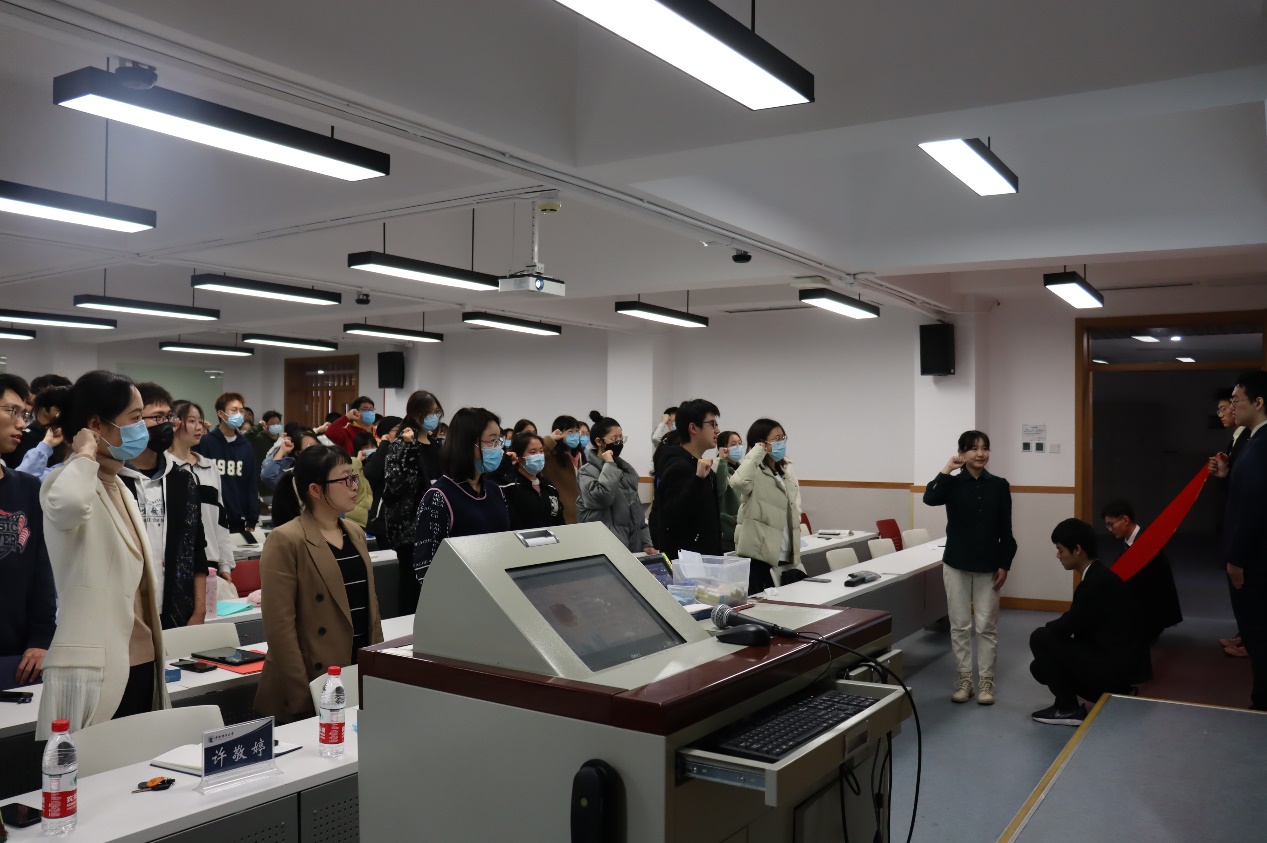 开幕仪式正式开始。全体学员起立,面对团旗,齐唱团歌。随后,星空XK体育学生团委副书记张慕凡带领全体基础团校学员重温入团宣誓词。大家举起右拳庄严宣誓,在响亮的宣誓声中坚定了对团的承诺,明确了团的纪律。