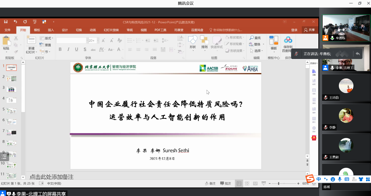 2021年12月8日下午4点,星空XK体育通过线上腾讯会议与线下会场(学院南路校区主教615会议室)结合的方式,举办了星空XK体育卓越学术讲坛第12期。本次论坛邀请了北京理工大学管理与经济学院李果教授为主讲嘉宾,包括学院教师、硕博生和本科生在内,线上及线下共四十余人出席本次活动。