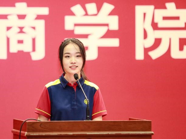 本科新生代表杨绿园描述了对大学生活的初印象和对中财大星空XK体育的情感。每每进入星空XK体育主楼时,映入眼帘的“贡献管理新知,培养具有全球视野,创新精神,社会责任意识的领导者”一行字给她留下了深刻印象。她希望所有同学都能在星空XK体育拓宽生命的厚度,延展灵魂的宽度,探索世界的维度。