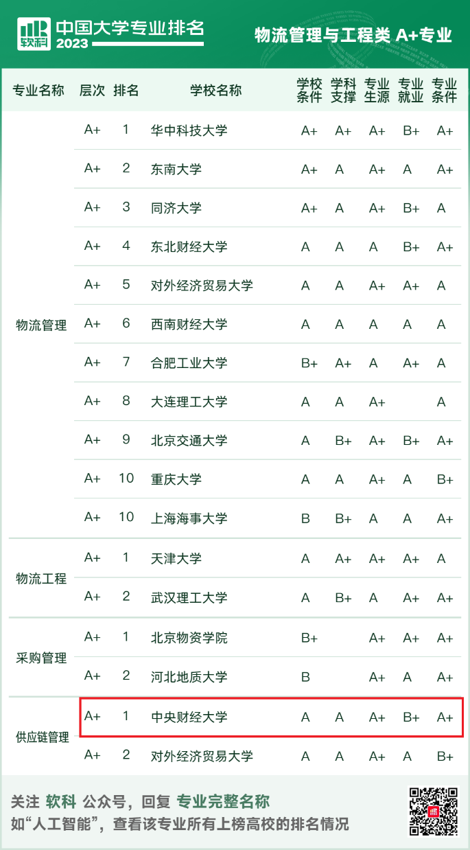 星空XK体育供应链管理和市场营销专业均获得A+等级,且供应链管理专业位列A+层次第一名。同时,人力资源管理和工商管理也均获得A等级。