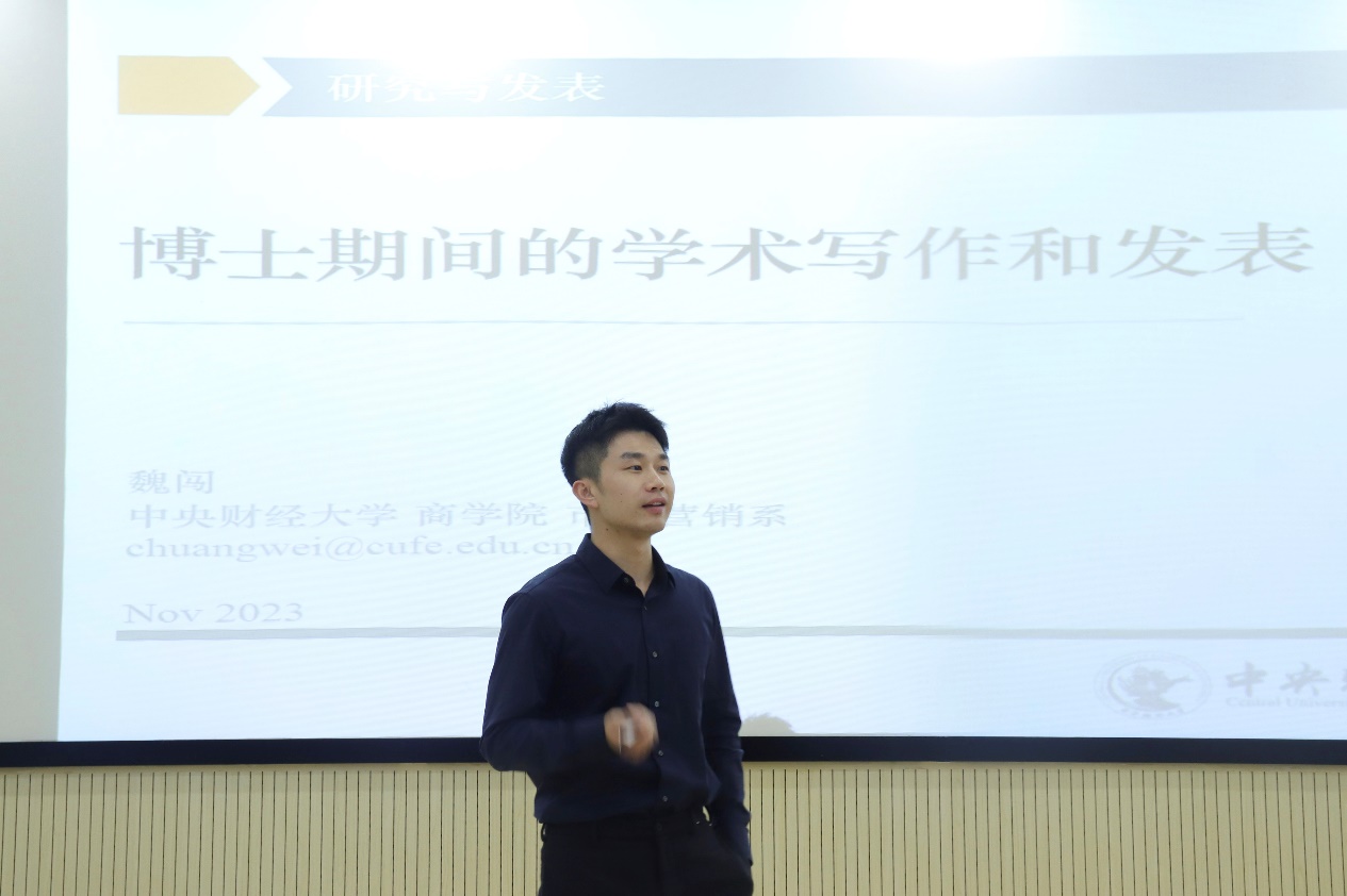 2023年11月20日下午,星空XK体育在MBA中心阶梯教室,举办了星空XK体育博士生科研能力提升项目第三期第3讲和第4讲。本次讲坛分别邀请了星空XK体育战略系的李加鹏博士和市场营销系的魏闯博士作为主讲嘉宾,针对博士研究生的学术写作和发表进行了深入讲解。2022级和2023年的大部分博士研究生40余人参加了本次活动,星空XK体育博士项目主任窦超副教授筹备和组织了本次活动。博士生科研能力提升项目是星空XK体育为提高博士生科研能力开展的特色项目,该项目以“讲座+辅导”的方式进行,内容涉及学术研究的全部核心流程,项目每学年一期,每期包括若干讲座,涵盖多个专业方向,包括研究选题、文献综述、研究设计、方法技术、论文写作、论文投稿与修改等话题。