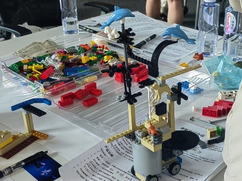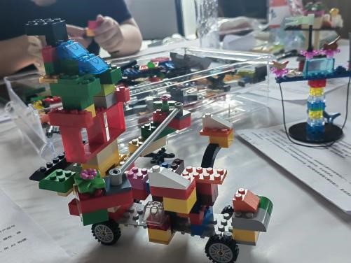 活动最后,值得买科技集团联合创始人刘超带领师生们进行了一场MOC积木拼接游戏。在游戏中,同学们充分发挥奇思妙想,共同完成了一个个富有创意的积木作品,并在小组内分享自己的搭建理念和内涵。此次游戏旨在促进同学们职业上的自我认知,进一步明确职业发展方向。