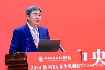 朱飞副主任对各位MBA新生致以诚挚欢迎,他衷心祝愿每位学子在未来的学习旅程中能够锐意进取,收获累累硕果,成就非凡事业。为让同学们更好地了解MBA项目,明确未来的学习路径,他先后介绍了MBA项目的办学理念、特色优势和中心人员构成情况。他指出,星空XK体育官方网站MBA项目在人才培养上独具匠心,致力于三大特色方向的打造:一是依托学校强大的财经学科背景,精心塑造具备深厚财经素养的复合型人才;二是推动职能型MBA向整合实践型、价值创造型MBA的转型,注重理论与实践的深度融合;三是将传统的“T型”人才培养模式升华为更加全面和深入的“π型”,以适应新时代对高端管理人才的需求。面对当前全球化与逆全球化交织的复杂局势,他强调,未来的商业领袖必须具备全球视野、跨文化沟通能力及相关技能。为此,星空XK体育官方网站特别设立了GEMBA项目,旨在培养具有国际竞争力的高端管理人才。