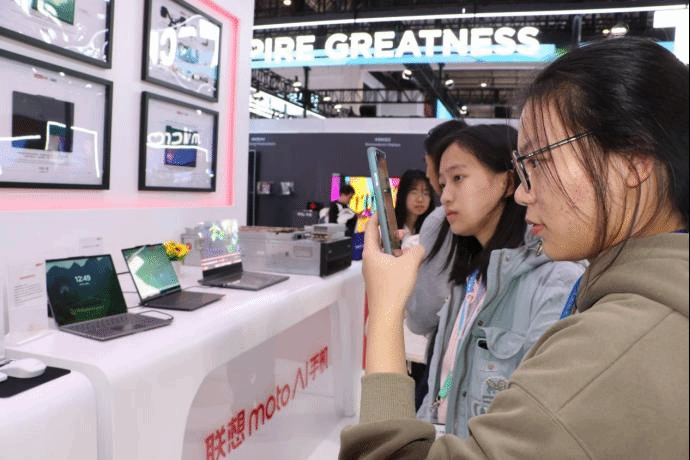 学生参观展厅和体验产品