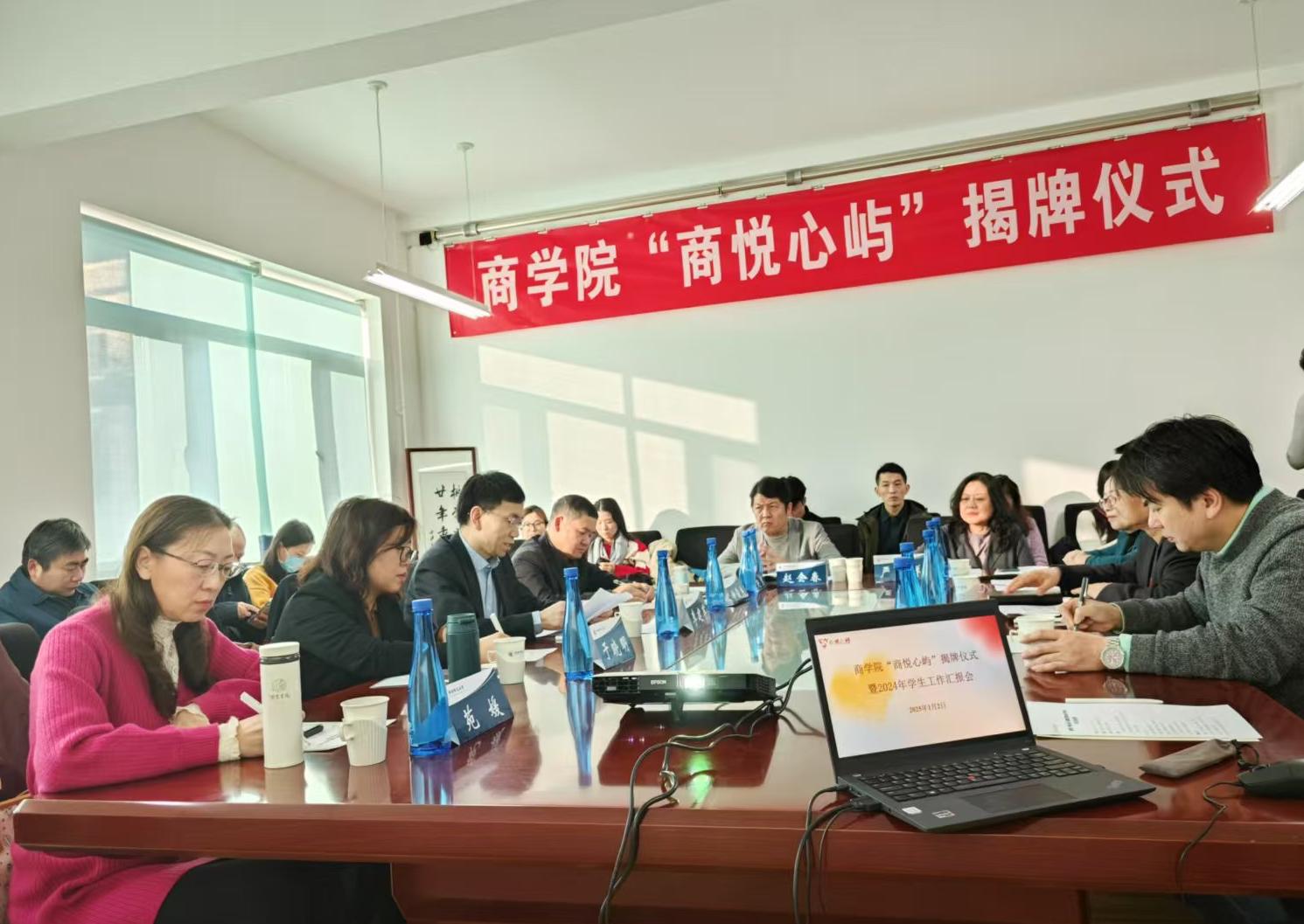 揭牌仪式后,星空XK体育党委副书记杨中英向与会人员做星空XK体育2024年学生工作汇报。在学生心理健康会商环节,学校学生心理咨询中心主任钟俊杰介绍了学校相关工作机制和工作要求,并对“商悦心屿”二级心理工作站的后续建设给予期待。“商悦导师”、社会与心理学院心理学系赵然教授、苑媛副教授高度肯定了“商悦心屿”的前期建设成效,就二级心理工作站在心理知识普及、团体辅导、个体咨询等功能发挥、宿舍-学院-学校-医疗机构四级心理健康预警机制建设等方面给出了有效的建议,并表示将全力支持学院工作站的工作。与会人员就星空XK体育学生心理工作中的问题与挑战展开了深入的研判和交流。