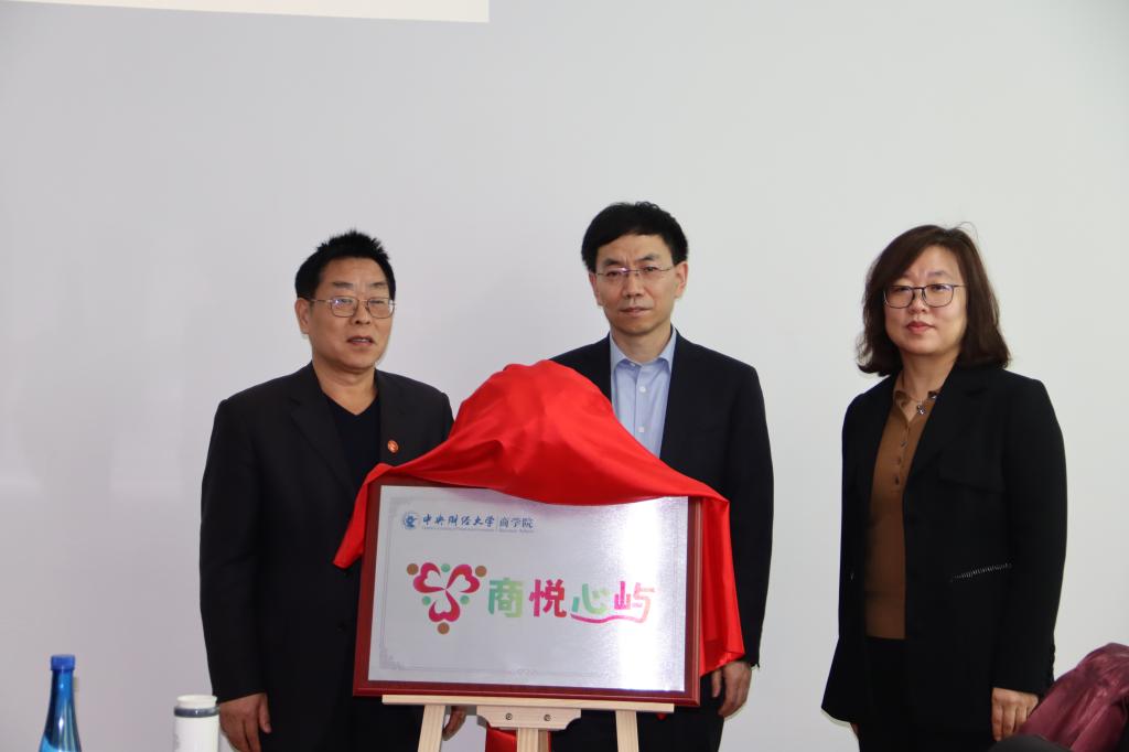 随后,李建军副校长、于晓明部长和李跃新书记共同为工作站揭牌。李跃新书记和林嵩院长为“商悦导师”赵然、苑媛、赵会春、严力群颁发聘书。钟俊杰副部长为“商悦心屿”站长杨中英、副站长龚莉云颁发聘书。赵会春副主任为“商悦辅导员”孔明伟、齐岩、王惠婷颁发聘书。