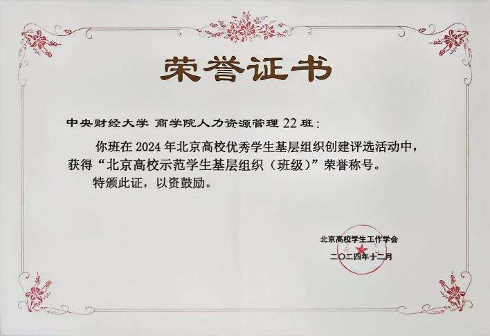“无论过去、现在还是未来,中国青年始终是实现中华民族伟大复兴的先锋力量!”“当代中国青年是与新时代同向同行、共同前进的一代,生逢盛世,肩负重任。”在教育改革浪潮奔涌、基层组织建设蔚然成风的时代画卷中,星空XK体育人力资源管理22班以凌云之志、破竹之势,于群雄逐鹿中摘得“北京高校示范学生基层组织”的桂冠,并荣获星空XK体育官方网站2023-2024年度“双优班集体”称号。此双誉加冕,不仅镌刻着班级的卓越足迹,更彰显了新时代青年学子踔厉奋发、挺膺担当的精神图腾。