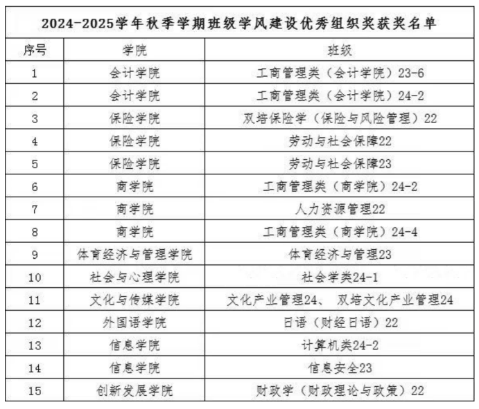 2024-2025学年学风建设优秀组织奖
