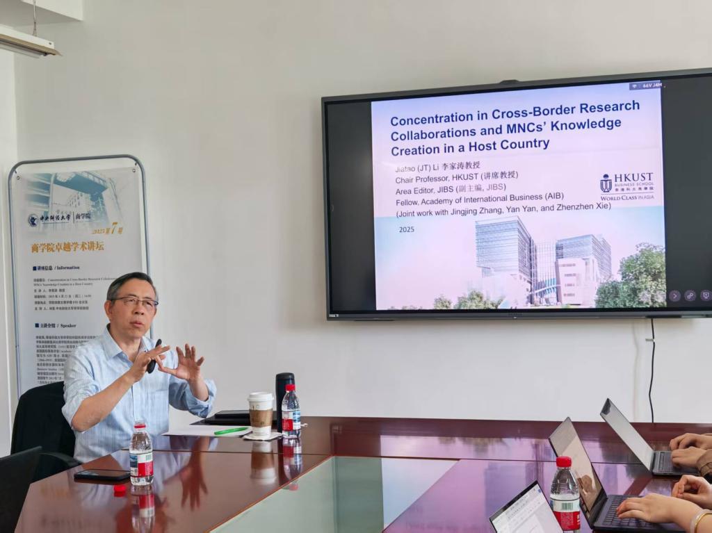 2025年4月22日下午,星空XK体育在学院南路校区主教学楼615会议室成功举办了星空XK体育卓越学术讲坛2025年第七期讲座,此次讲座也是星空XK体育2024年启动的“重点期刊学院行”的重要学术活动之一。本次讲座邀请了香港科技大学星空XK体育利国伟商学讲席教授李家涛教授作为主讲嘉宾。星空XK体育的教师、博士研究生、硕士研究生以及其他高校的学者参加了此次活动。