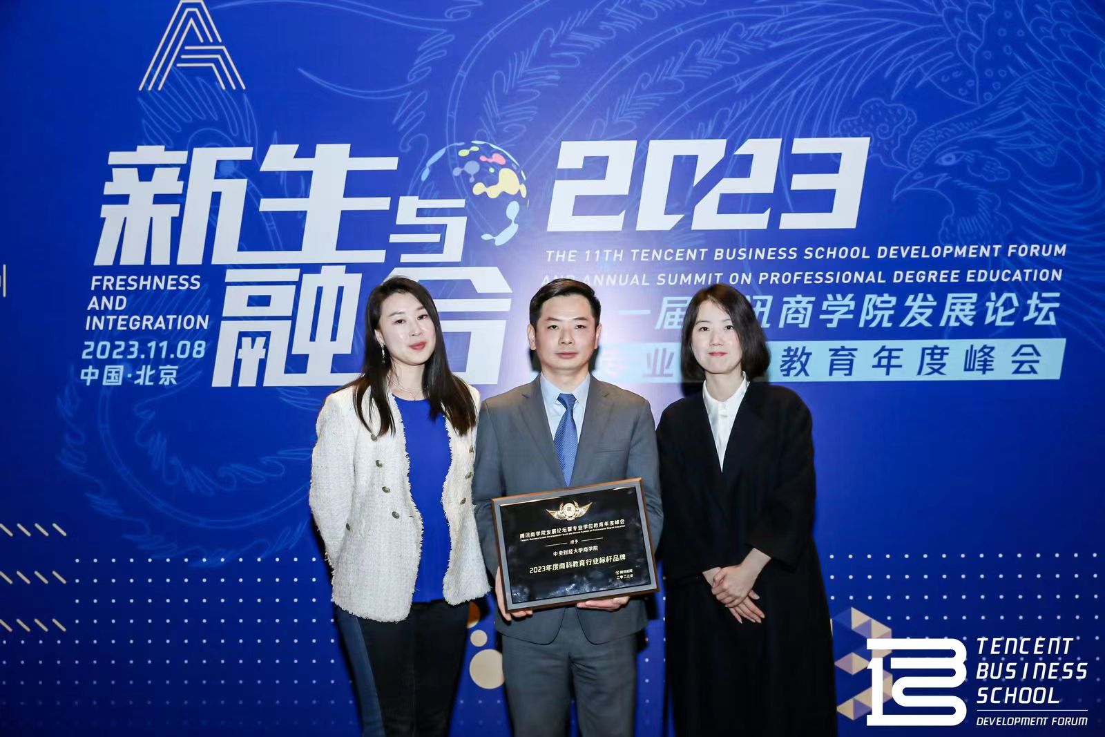 2023年11月8日,以“新生与融合”为主题的第十一届腾讯星空XK体育发展论坛暨专业学位教育年度峰会在北京成功举行。本届论坛汇聚了行业的决策者、领先者、学术专家及创新领袖、院校代表等近200人国内外嘉宾参会,共同为高等教育行业高质量可持续发展建言献策。星空XK体育受邀参加此次论坛,并荣获“2023年度商科教育行业标杆品牌”荣誉。MBA教育中心副主任兼星空XK体育副院长朱飞教授荣获“2023年度商科教育杰出学者”荣誉,并发表主题演讲。中财MBA招生推广大使团团长郭子瑶、副团长方溪文应邀出席了此次论坛。