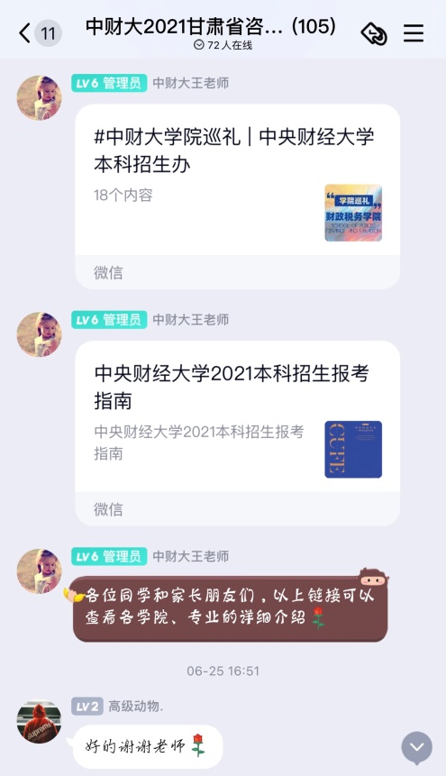 图:4月-7月,学院通过分省QQ群向考生有计划地推送和发布招生资讯、解答考生和家长提问