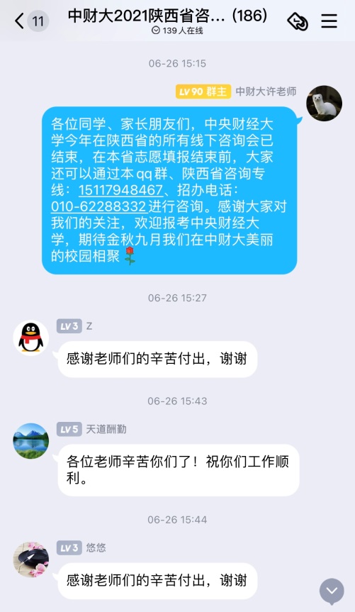 由组织与人力资源管理系严力群老师、教学科研管理办公室主任王月英老师、办公室主任孙翔老师组成的招生热线接听小组于6月21日至30日专门负责接听陕西、甘肃两省的咨询热线和星空XK体育招生咨询热线,耐心解答考生及家长的问题和困惑,在做好招生咨询服务的同时积极展现中财大老师认真负责的风采。