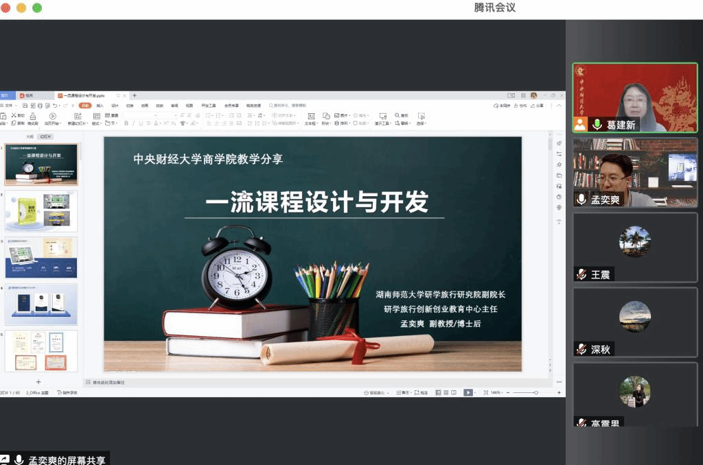 以“一流课程设计与开发”为主题,孟奕爽副教授首先分享了一流课程的标准,接着结合自身教学研究与实践,介绍了线上一流课程的三个核心、线下一流课程的三个创新以及混合式一流课程的三个方法,最后从实操角度介绍了一流课程开发的4P原则和5M策略。