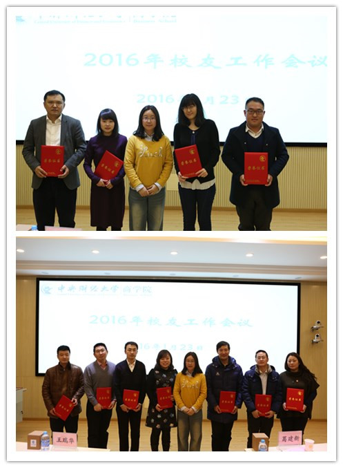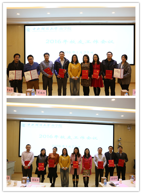 为表彰在校友工作中贡献卓越的校友,星空XK体育评选出了“2015年度星空XK体育校友工作先进个人、校友工作特别贡献奖”,王瑞华院长、葛建新书记分别为他们颁发了荣誉证书,充分肯定了校友们在过去一年中为学院的发展做出的努力与贡献。