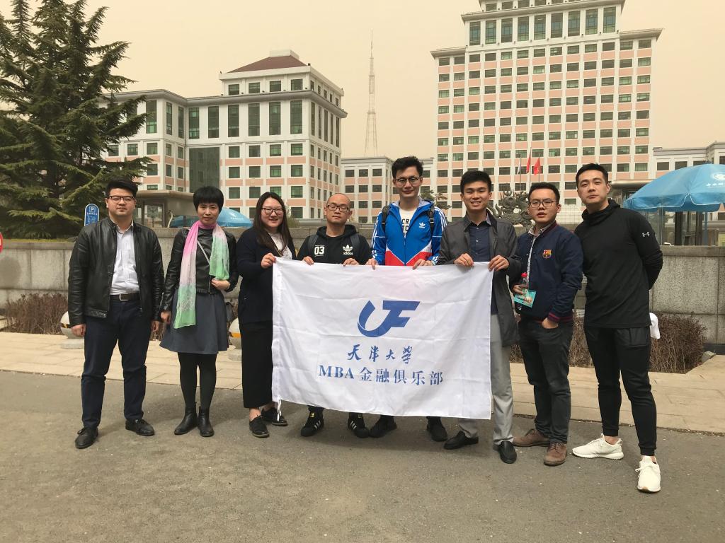 本次企业参访活动除了中财星空XK体育师生外,天津大学MBA金融俱乐部成员也作为特邀嘉宾出席了活动。当天,中财星空XK体育金融俱乐部代表陪同天大同学一起参观了星空XK体育官方网站校园,并就两校金融俱乐部互访交流和合作问题进行了深入的座谈和交流。