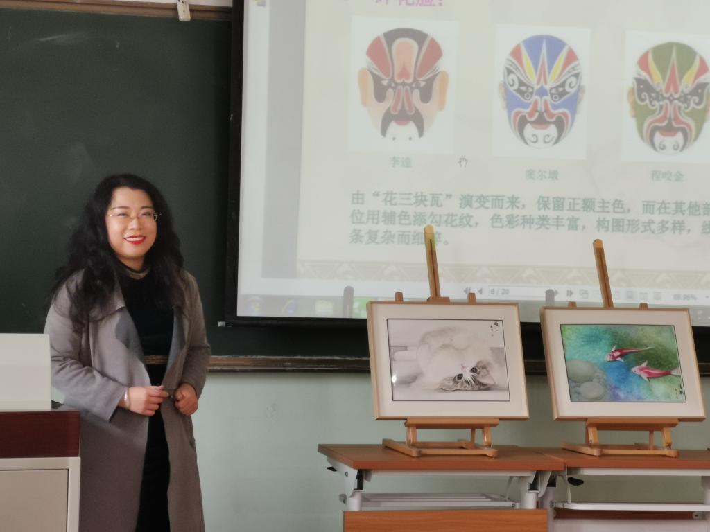 蒋希校友说,她想给我们传递的是:国粹是一种文化传承,国画和脸谱中,都藏着许多深意。在脸谱中,为什么有些眉毛是上挑的,有些对称有些却不对称?为什么托宝塔的天王是“紫色”的,它们各自又代表着什么?而这些的答案,正是国学中的文化,是我国几千年的历史沉淀。