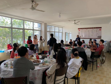 午餐地是一家湖边餐厅,抬头便是窗外的湖光山色,用餐体验极佳。餐桌上也当然少不了让人激动的拓展游戏——各小组在“听歌识曲环节”激情抢答,同时又惊现麦霸,让一众校友大饱耳福。