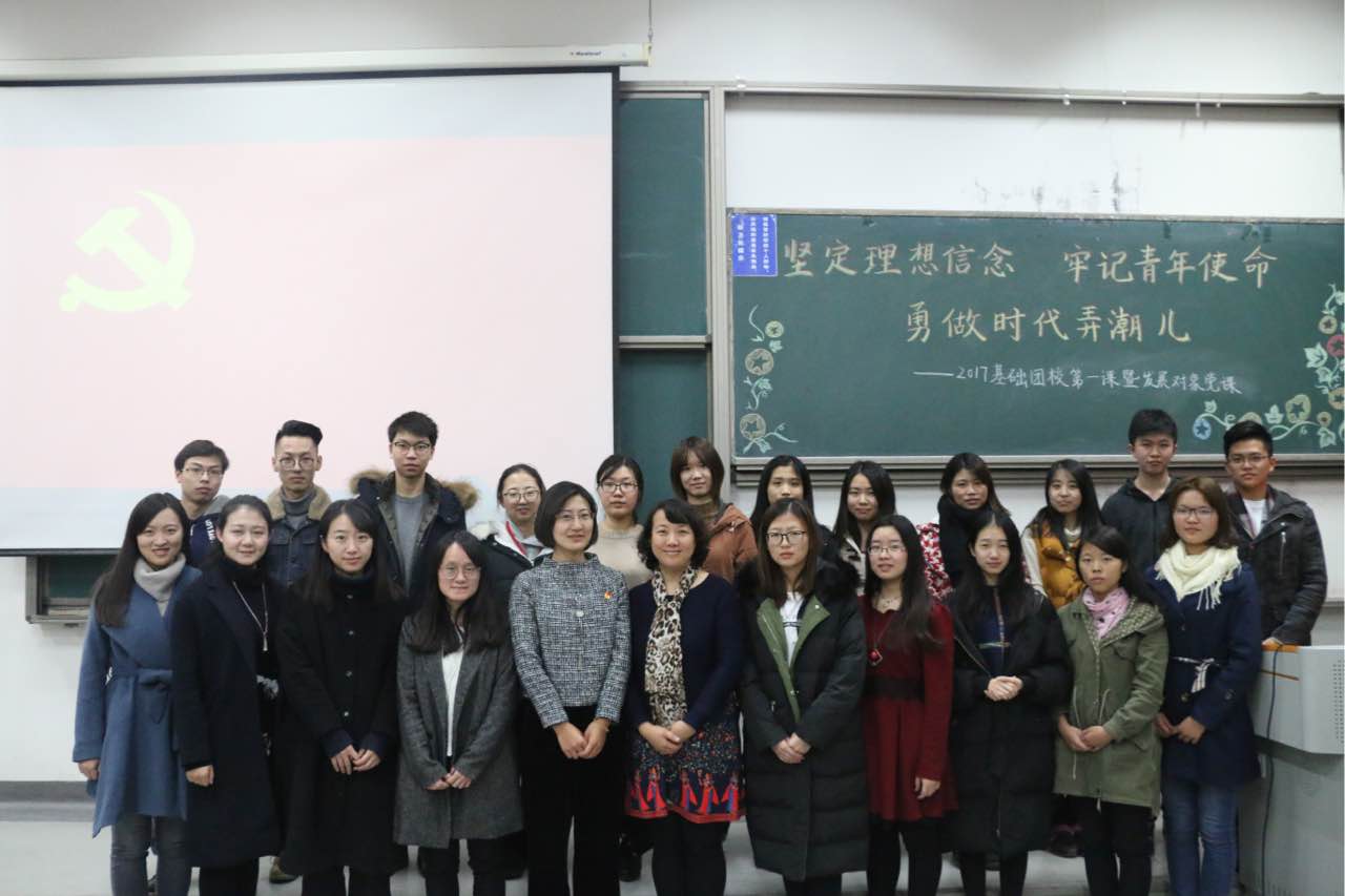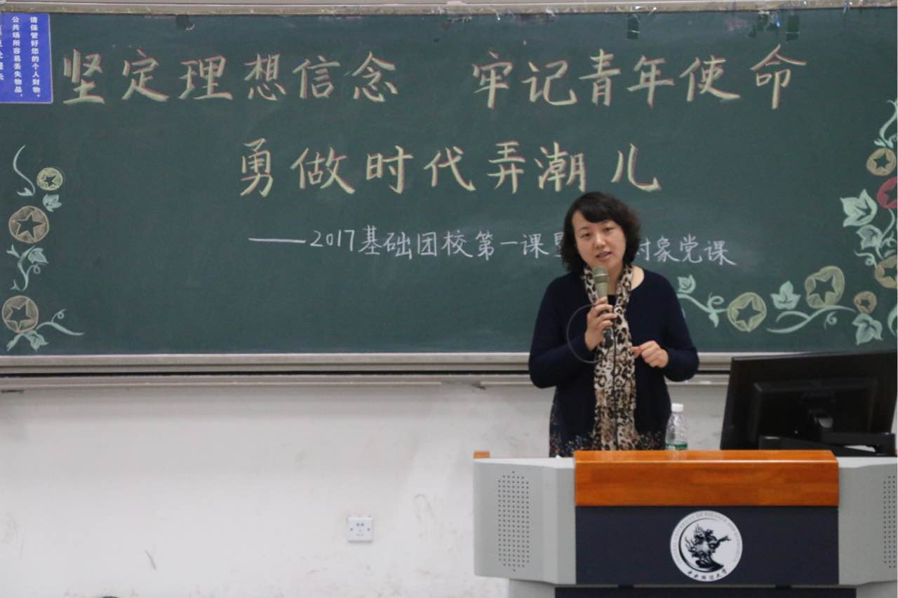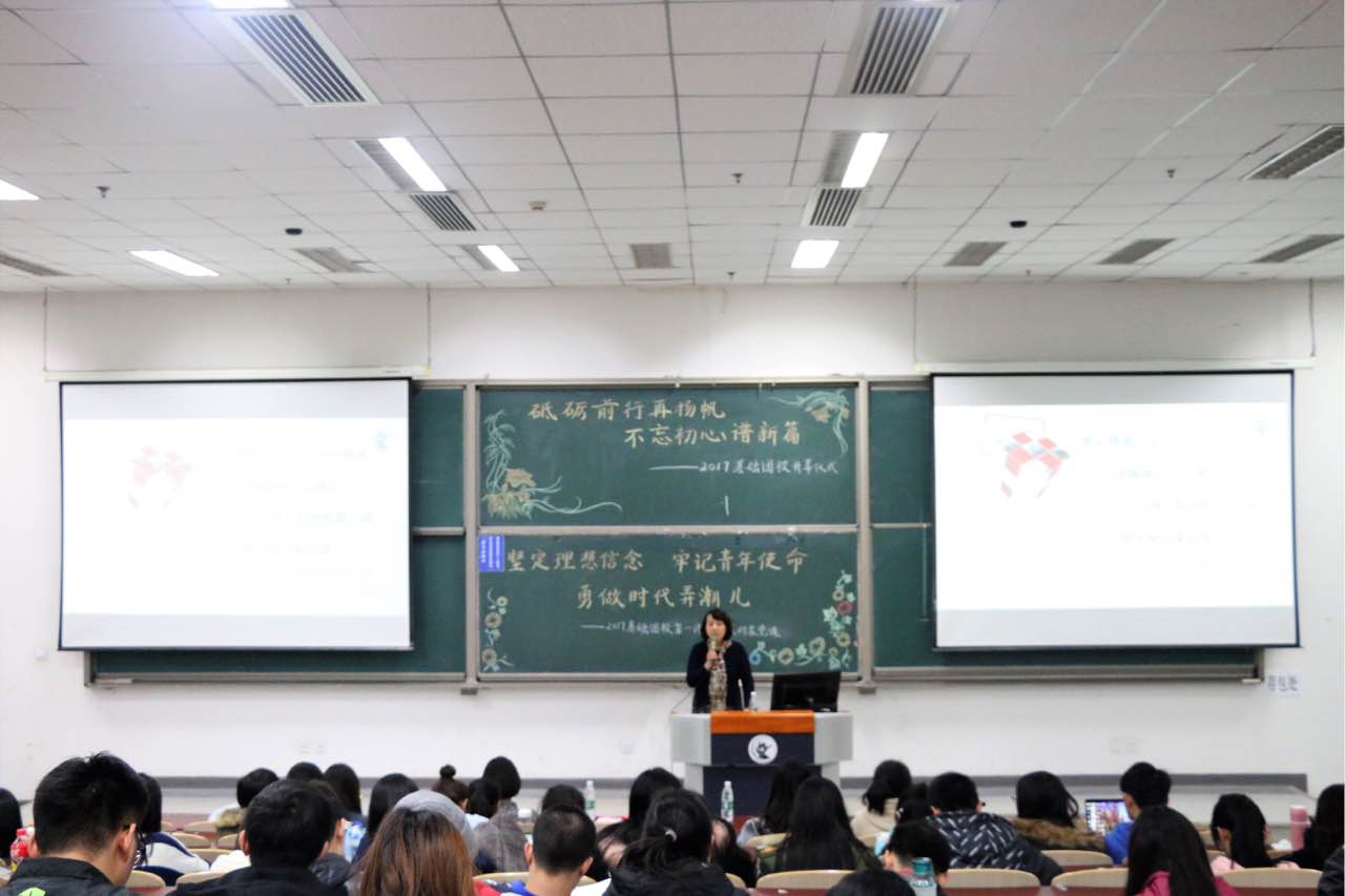 2017年11月15日下午,星空XK体育党委副书记王容老师面向星空XK体育2017年度发展对象和基础团校学员开展理想信念教育讲座。讲座以“坚定理想信念,牢记青年使命,勇做新时代弄潮儿”为主题,结合十九大报告内容和青年学生理想信念教育展开。