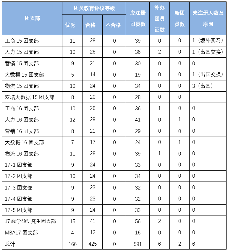 根据各支部团员教育评议情况,星空XK体育团委组织部开展团员团籍注册工作,对于评议等级“优秀”、“合格”的团员进行团籍注册,加盖注册专用印章,对于评议等级为“不合格”的团员不予注册。以下为星空XK体育各支部2018年上半年团员教育评议及团员团籍注册情况:
