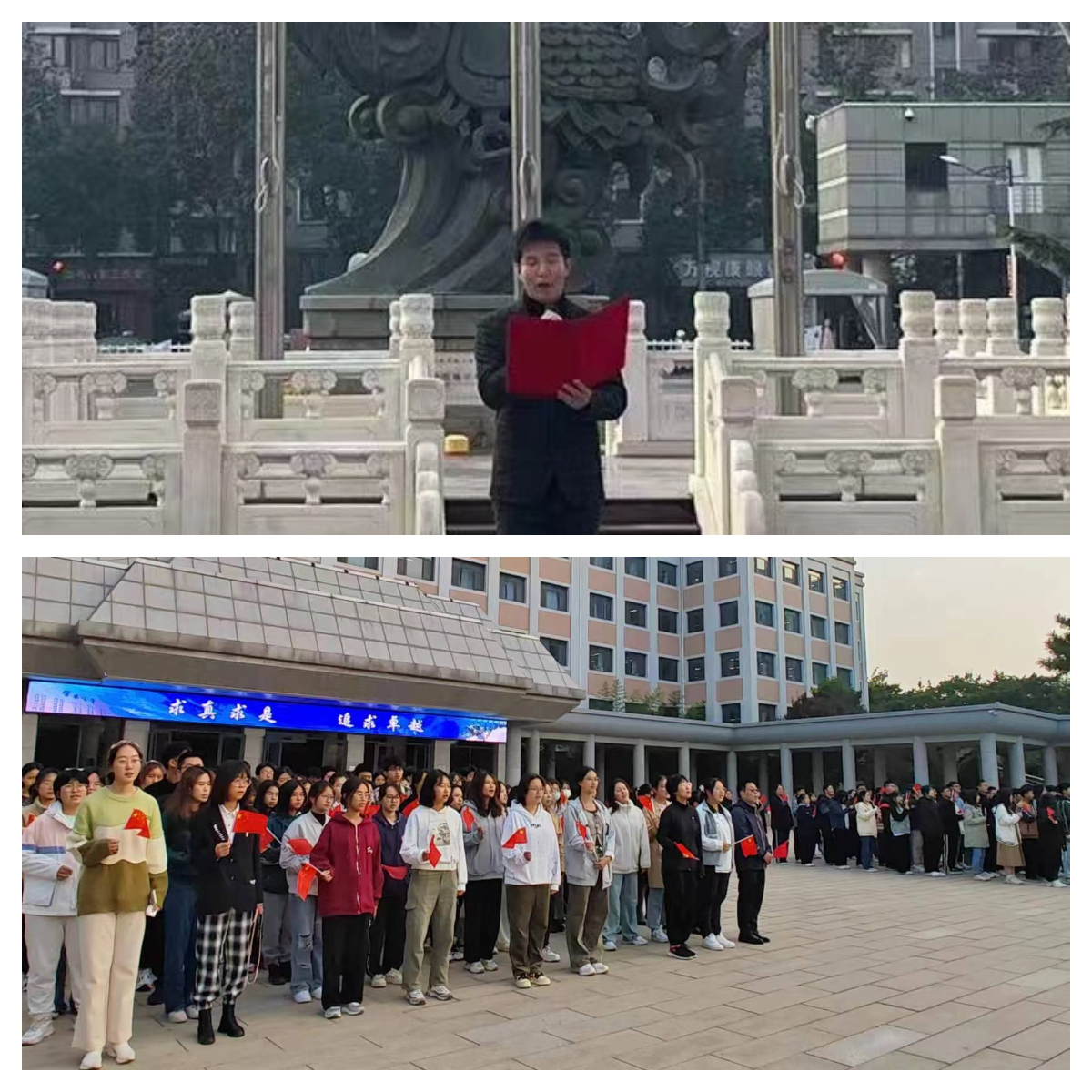 为深入学习贯彻习近平新时代中国特色社会主义思想和党的二十大精神,进一步加强2023级本科新生理想信念教育,2023年10月23日早上7点,星空XK体育和社会与心理学院在主教楼南广场联合组织开展了“青春向党,强国有我,争做新时代好青年——国旗下的讲话”主题教育,活动内容包括观看升旗仪式和开展主题活动两个部分。星空XK体育党委书记李跃新、党委副书记杨中英、辅导员龚莉云出席了本次活动,星空XK体育135名本科新生和社会与心理学院全体新生参与了活动。