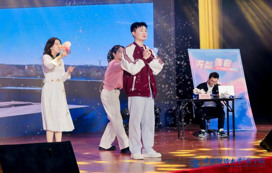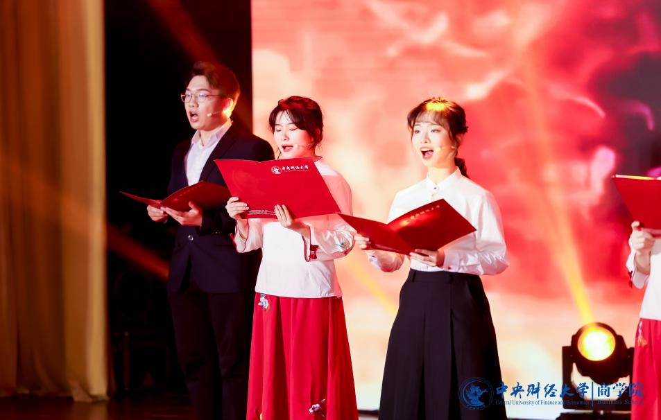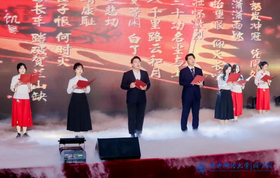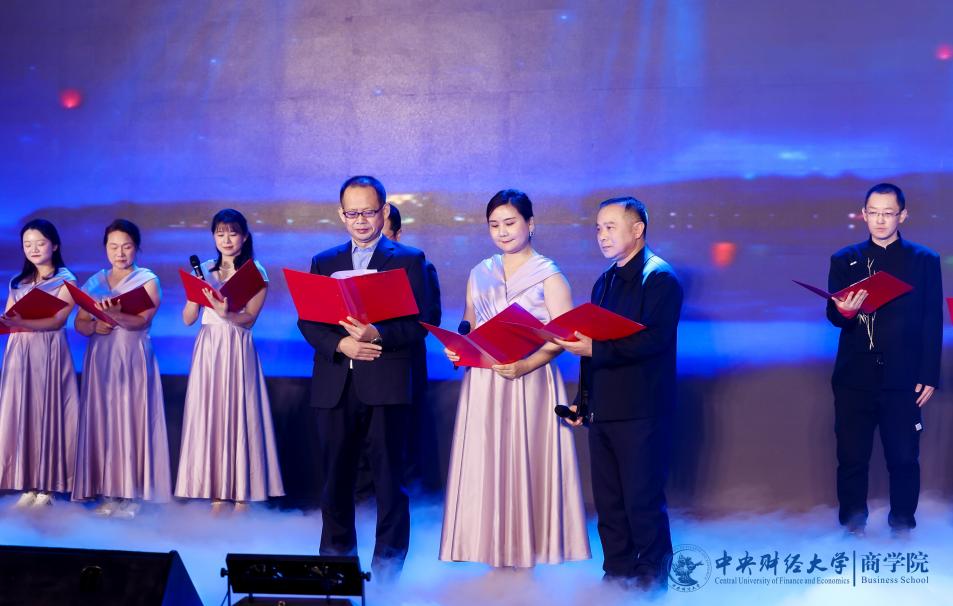 中财MBA推广大使团带来的集体舞《爱的华尔兹》优雅登场,舞步翩翩恰似恋人之语,展现爱情的甜蜜与轻盈。商海启程,谁来领航?星空XK体育徐兆铭、安贺新、王生辉、庞守林、周利国、贾晓菁等18位老师朗诵《领航》,声音浑厚,真情灼灼,用朗诵来表达心中引领航向、不惧风浪的伟大信念。2024级MBA全日制班代表与王茜舒、张耀天、牛钟毓等带来的《一起向未来》充满着对未来的期待,青春洋溢的歌声里展现积极乐观的风采。