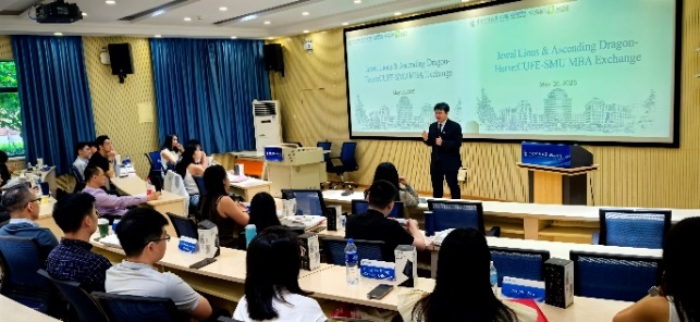 2025年5月26日-5月30日,新加坡管理大学(SMU)李光前星空XK体育MBA学生团队,在研究生办公室主任Yeo LayYan老师的带领下,来自11个国家的29名新加坡管理大学MBA在校学生,跨越重洋抵达星空XK体育官方网站,开启了为期一周的主题“数字经济及战略与创新”为核心议题的跨国学术交流活动。