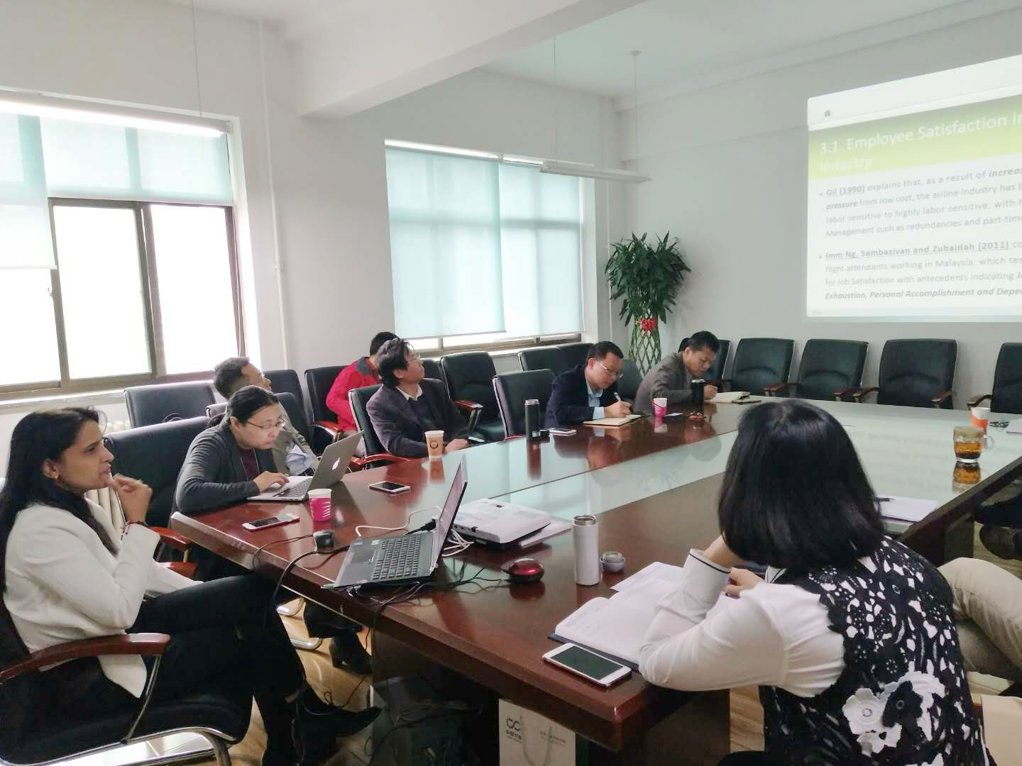 10月24日,Bhumika Gupta博士与我校星空XK体育教师举办学术研讨会,主题:The Antecedents to Employee Satisfaction – An Investigation in the Indian Aviation Sector。星空XK体育多位教师和博士生参加了研讨会,双方阐述了最近的研究主题和进展,Bhumika Gupta博士介绍了最近的研究课题,介绍了自己的学术研究成果。双方进行了充分、深入的交流,并就感兴趣的领域初步达成了学术合作意向。
