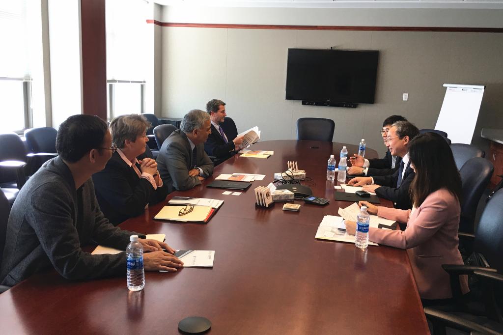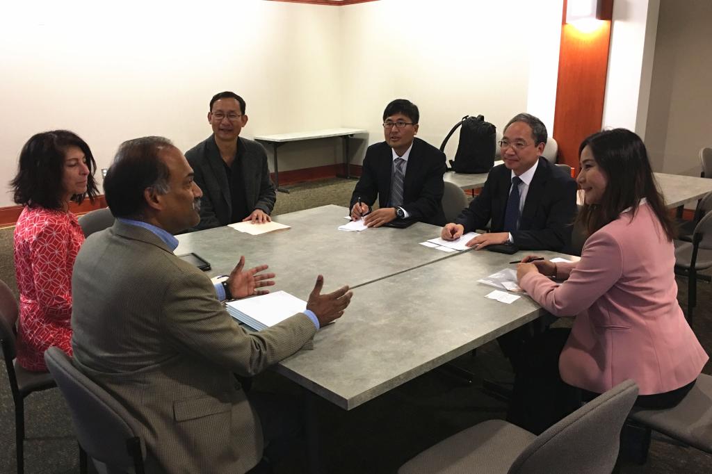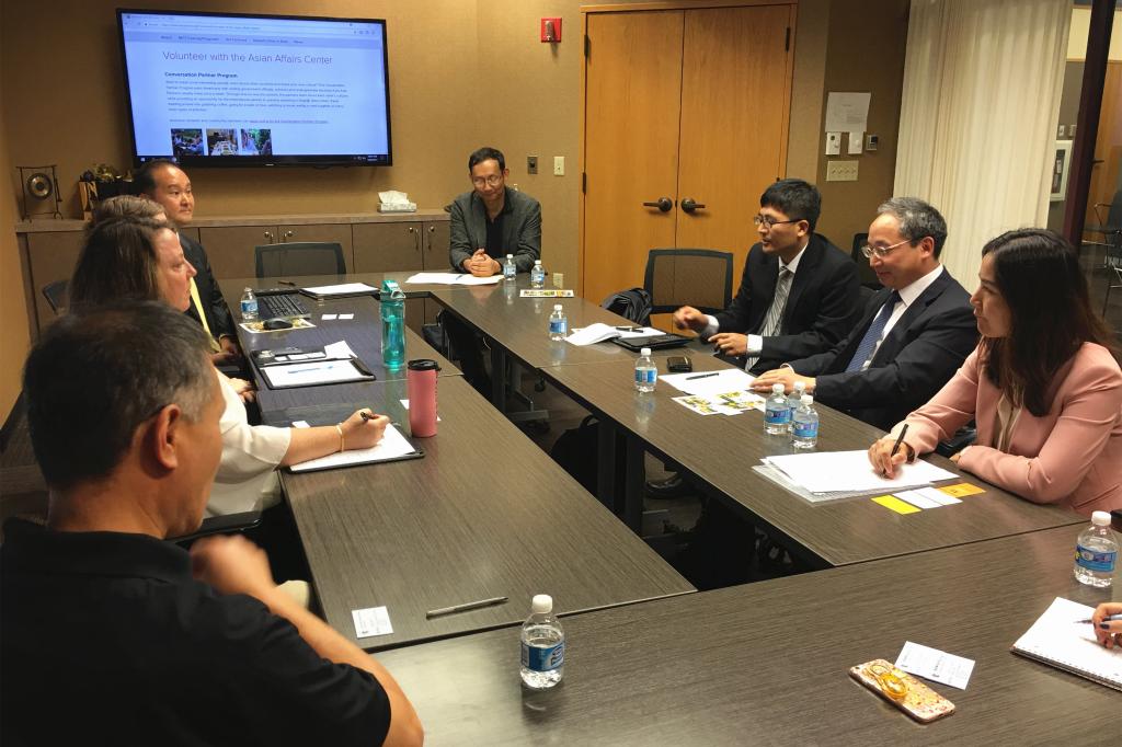 在密苏里大学亚洲事务中心,Sang S.Kim主任以及亚洲事务中心的多位老师介绍了密苏里大学在接收亚洲访问学者,开展学生交换和互访,以及教师培训、管理人员培训等方面的工作情况。双方探讨了开设暑期学校、组织短期课程培训班等多种活动的可行性,并且达成了初步合作意向。